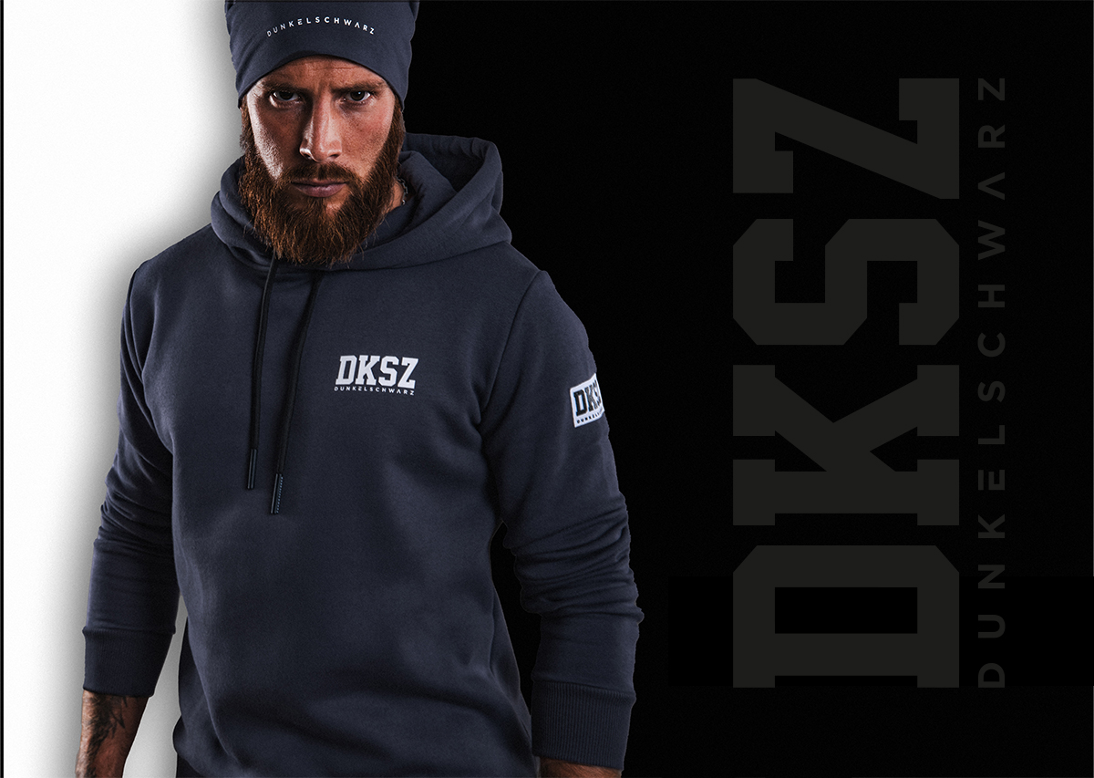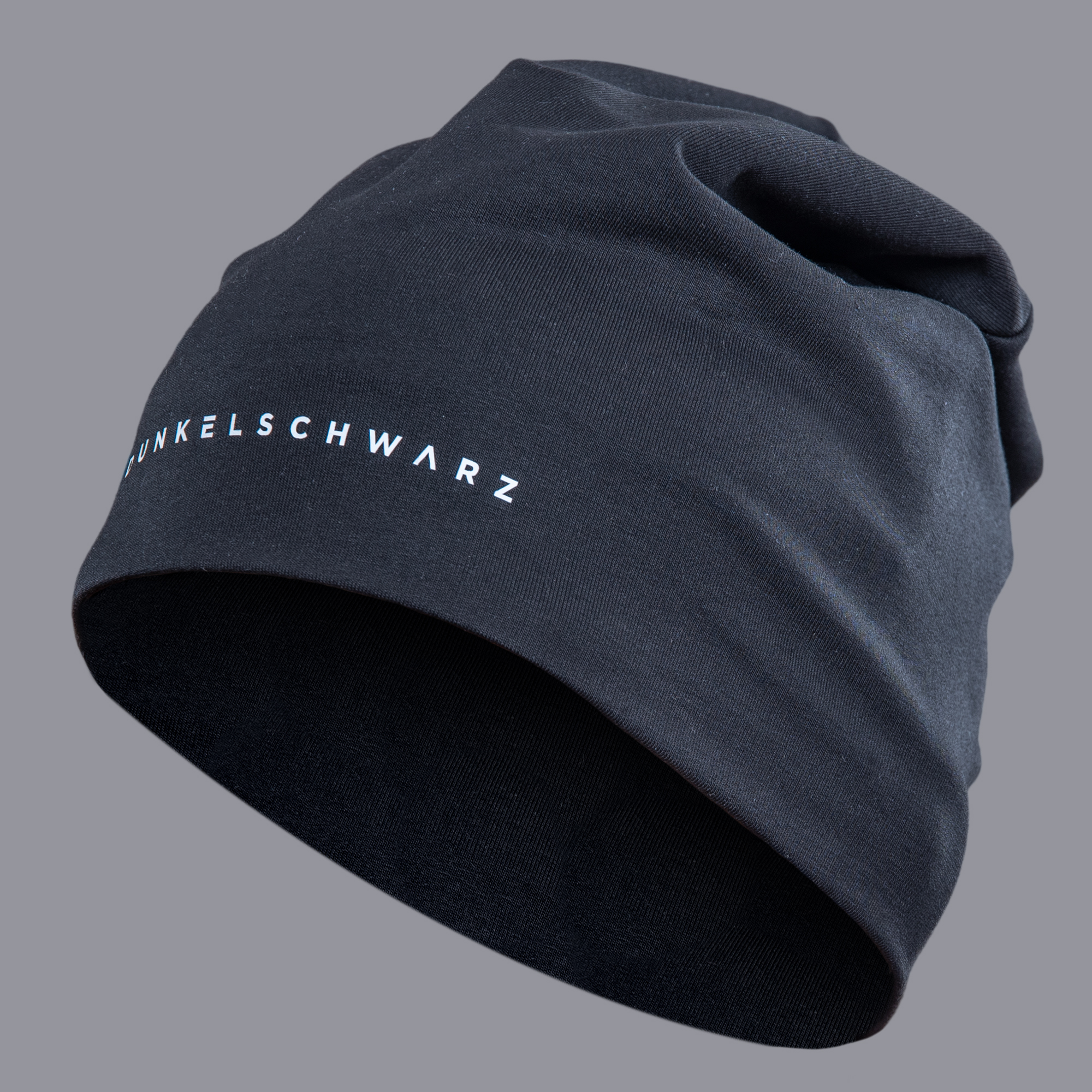 modische Haube mit dem Logo DUNKELSCHWARZ vorne auf der Stirn gedruckt. Der doppellagige, 2fädige Sweatstoff verleiht dieser Haube ein wunderbares Tragegefühl und coole Passform.